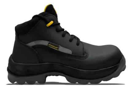 Lente de seguridad en policarbonato con marco negro. Ofrece protección contra impactos y rayos UV. Diseño ergonómico y resistente a rayaduras.